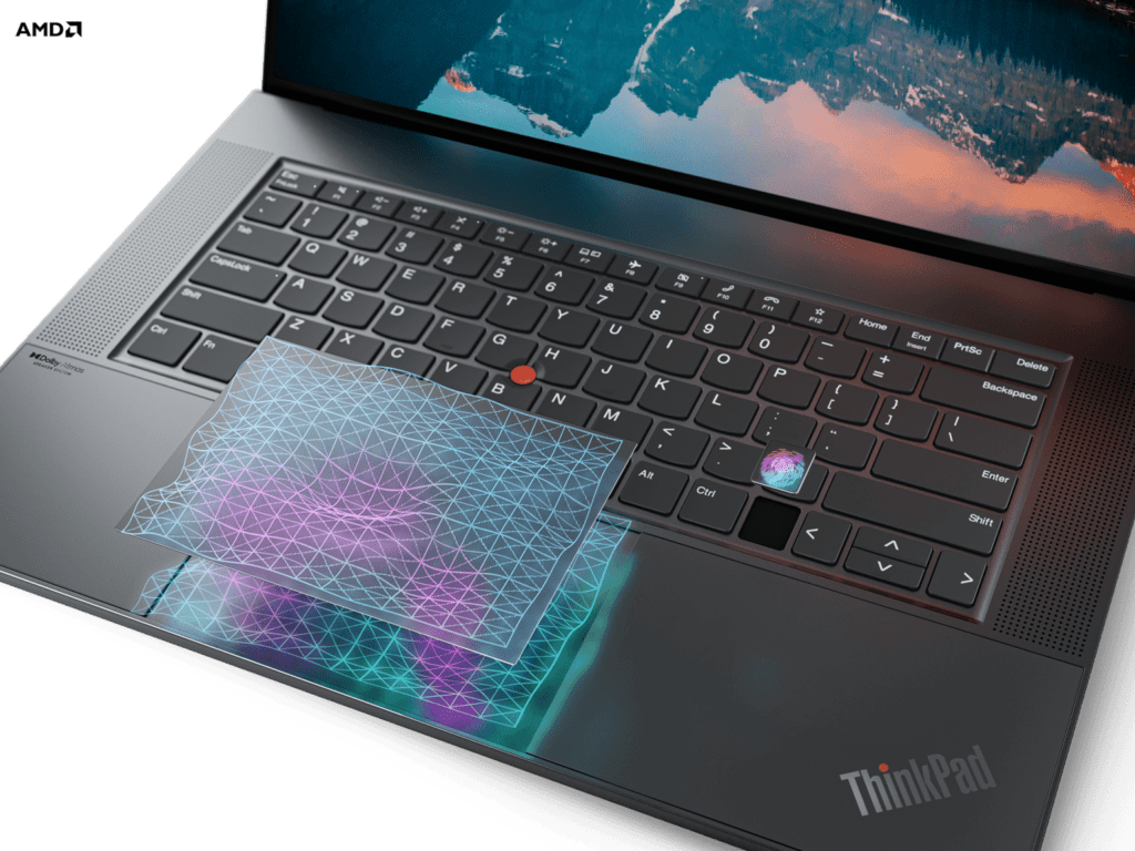 Furthermore, Lenovo and AMD have collaborated to deliver cutting edge platform design, streamlining all aspects of the system from silicon to hardware and software. The ThinkPad Z13, coupled with the exclusive AMD Ryzen™ 7 PRO 6860Z processor3, delivers a supreme collaboration experience. The processor is optimized to deliver seamless audio and video performance, maximize responsiveness, and deliver incredible battery life in applications like Teams and Zoom. ThinkPad Z16 can also be configured with the new AMD Radeon™ RX 6500M discrete graphics with AMD smart technologies boosting productivity, enabling advanced content creation, and casual gaming. When paired with the Ryzen processors, AMD Smart Shift Max offers an instantaneous power boost for both CPU and GPU, and Smart Shift Eco is designed to maximize battery efficiency.
