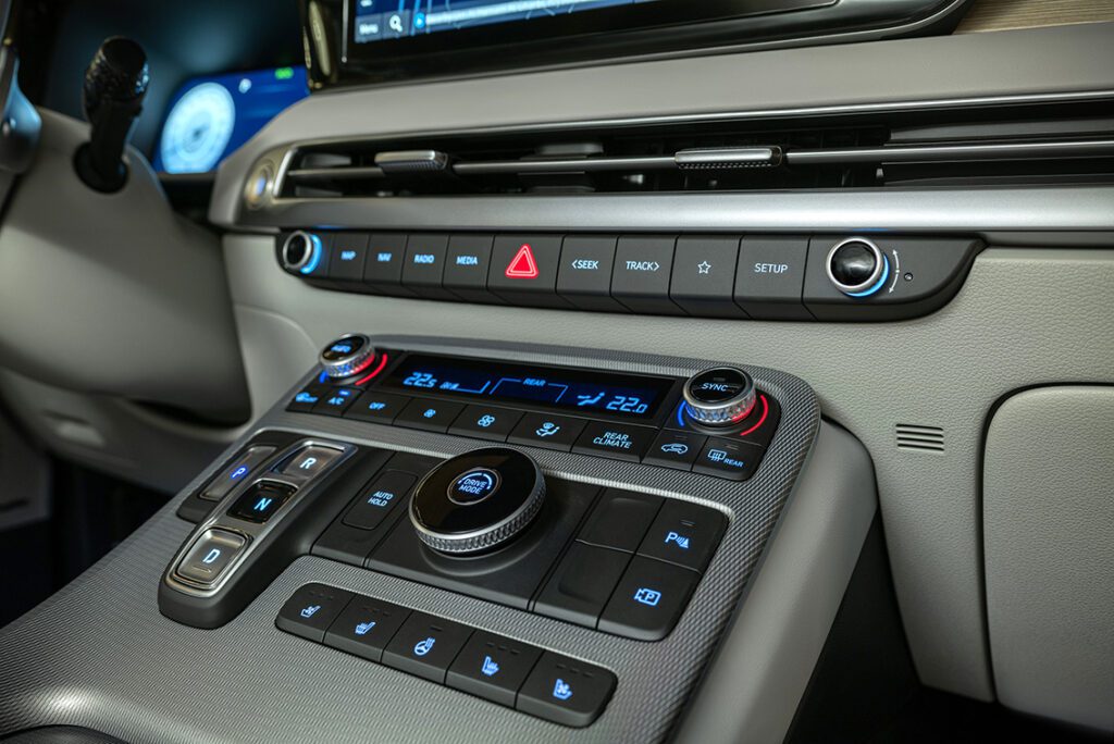 The new 2023 Palisade comes now with many drivers and passenger comfort and convenience novelties; the novel Ergo driver’s seat, which provides designed to provide comfort and help reduce fatigue during long drives. Passengers in the 2nd row now enjoy enhanced comfort with the added wing-out headrests and seat ventilation for extra comfort. Another smart tech feature meant for more driver convenience, is the optional full display “digital center” rearview mirror, which uses a rearview camera to allow the driver to clearly see behind the new Palisade without the obstructions of passengers or cargo. The large and user-centric 12-inch display boasts many applications and functionality, including smartphone connectivity and mirroring capabilities.
